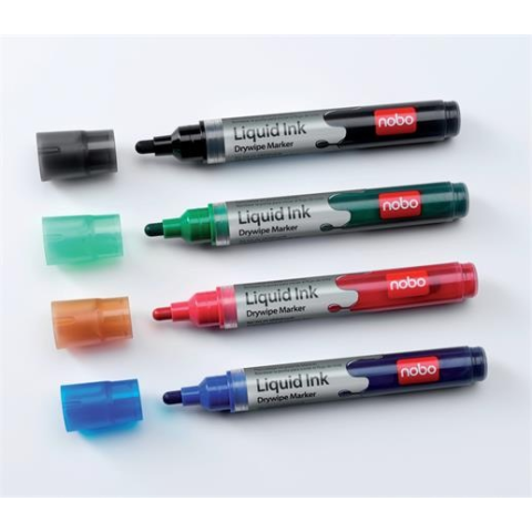 Teljes NOBO Táblamarker készlet, folyékonytintás, 4 különböző szín termékleírás