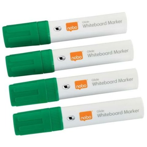 Táblamarker, vágott hegyű, 10 mm, NOBO "Glide", zöld - VN5391 - Tábla- és flipchart markerek, rostirónok - Ezek a mindennapos használatra tervezett táblamarkerek sokoldalú felhasználási lehetőséget kínálnak a nem porózus - pl. fehértábla, üveg vagy zománc