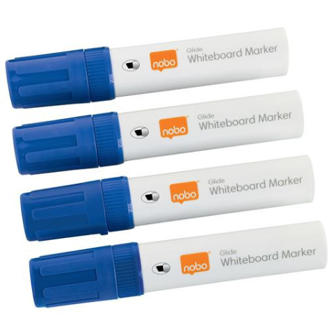 Táblamarker, vágott hegyű, 10 mm, NOBO Glide, kék Ezek a mindennapos használatra tervezett táblamarkerek sokoldalú felhasználási lehetőséget kínálnak a nem porózus - pl. fehértábla, üveg vagy zománcozott felületeken. Használd Nobo fehértáblákon az opti