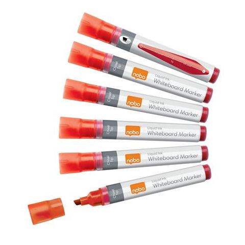 Táblamarker, vágott hegyű, 4 mm, NOBO, piros Ezek a mindennapos használatra tervezett táblamarkerek sokoldalú felhasználási lehetőséget kínálnak a nem porózus - pl. fehértábla, üveg vagy zománcozott felületeken. Használd Nobo fehértáblákon az optimális