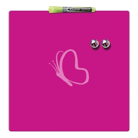 Quartet mágneses szárazon törölhető tábla keret nélküli pink négyzet csempe 360x360mm A csomag tartalmaz: két mágnest GlowWrite szárazon törölhető markert szereléshez :mágnesek és hab ragasztószalag Moduláris rendszer - keverhető és összeilleszthető m