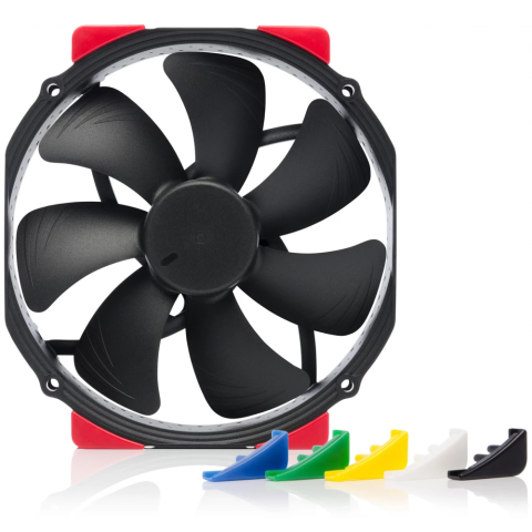 NF-A15 HS-PWM chromax.black.swap 140mm-es házhűtő ventilátor cserélhető, színes rezgéscsillapítós lapokkal.