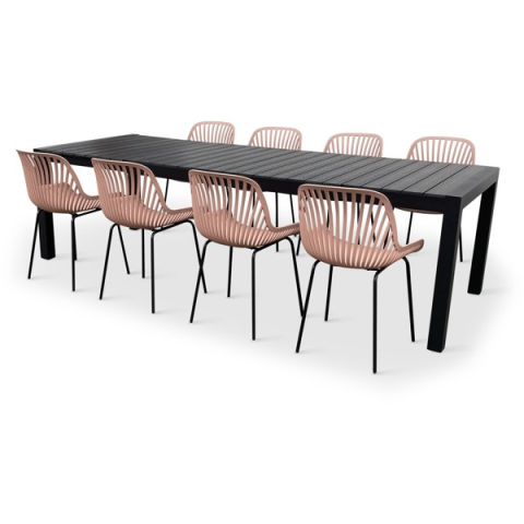 Noela szett GRANDE PASTO XXL/GABY régi rózsaszín 1 asztal + 8 szék kerti bútor termékleírás