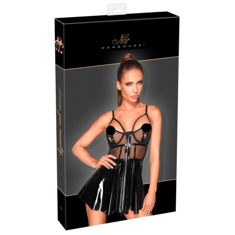 1 kép Noir - neccbetétes lakk ruha (fekete)