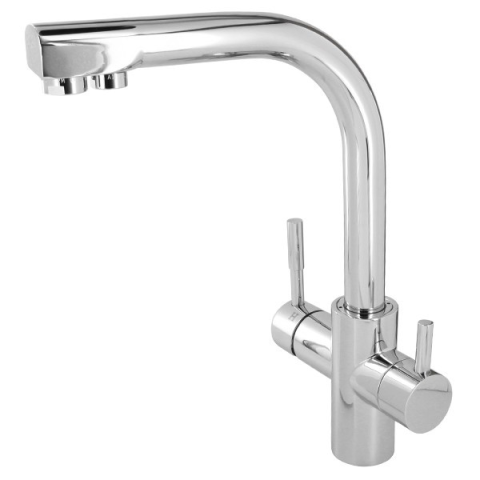 3 utas csaptelep vízszűrők és ozmózis rendszerek számára. Modern és divatos króm megjelenés. Ez a kiváló minőségű 3-utas csaptelep az optimális megoldás, ha nem szeretne további csaptelepet felszerelni a vízszűrőhöz a kerámia mosogató vagy a helyhiány m