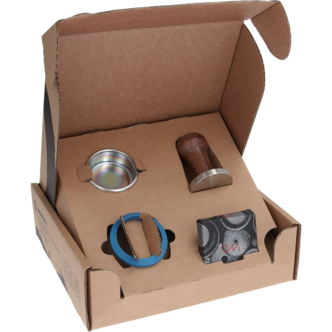 összetevői: | 1 szilikon szűrőtartó tömítés 71x56x9 mm | 1 precíziós zuhanyrózsa nanotec ø 56.5 mm | 1 precíziós szűrő nanotec 2T 18 gr 70xH24 | 1 precíziós tömörítő ø 58.4 mm fa nyéllel | Egyedi megoldás a jobb extrakcióhoz | és egy általános professzion