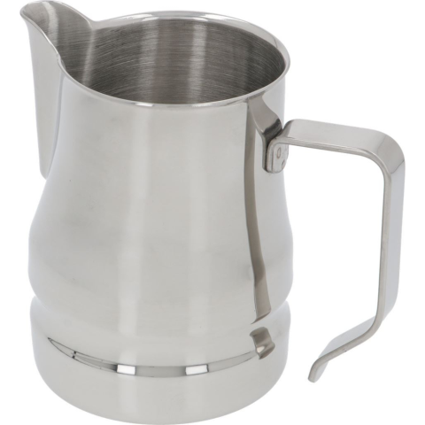 9 csésze - 18/10 rozsdamentes acélból | kifejezetten latte art-hoz tervezve | a tejkiöntő testén található innovatív horony felgyorsítja a tej forgását | elősegíti: | levegő bejuttatását | homogén krém képződését | idő csökkentését | a kiöntőcsőr alakja l