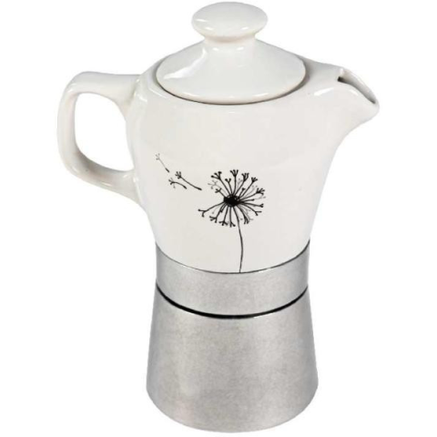 Készíts hagyományos, aromás kávét ezzel a 2 személyes Fatima Édeskettes kotyogós kávéfőzővel! Az elegáns, pitypang mintás porcelán kiöntő stílusossá teszi a kávézást.