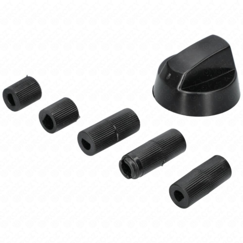 Cseréld le egyszerűen és költséghatékonyan a tűzhelyed elhasználódott vagy törött gombját! Ez az univerzális, fekete vezérlőgomb 5 különböző adapterrel érkezik, így a legtöbb sütővel és főzőlappal kompatibilis.