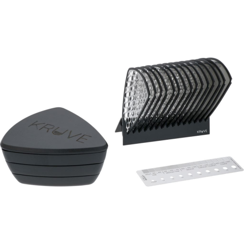 A Kruve Sifter egy professzionális szita, amely alumínium testből, fa fedélből és 5 darált kávé számára készült szitából áll: 300, 500, 800, 1100, 1400 μm, 10 kávészem szitából: 11, 12, 13, 14, 15, 16, 17, 18, 19, 20/64' és 1 szitatartóból. Tartalmaz egy