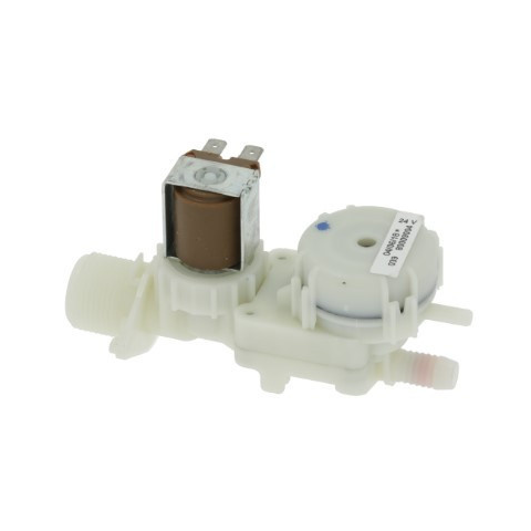 szelep 180° - 24DC 50Hz | bemenet 3/4' - kimenet ø 10 mm | árvízvédett | narancssárga áramlásszabályozóval a kimenetnél