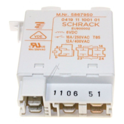 6 csatlakozással (2 NEM érintkező) Lehetséges cikklenyomat: MNO 5867950 SCHRACK 0419 11 1001 01 6VDC -16A / 250VAC 12A / 400VAC VDE 16A / 250VAC TYCO EU900002 080679 1 000 69 1173 002 ? Csatlakozók: 6 x 6,3 mm AMP