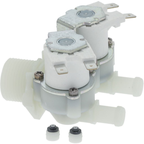 szelep 180° | bemenet ø 3/4' - 2 kimenet ø 10.5 mm | áramlásmérő szabályozókkal fehér 1,1 l/min Az alábbi típusokhoz: Jégkészítő MIGEL | IML18, IML21, IML31, IML41, IML51, KD3, KL18, KL20, KL21, KL31, KL32, KL41, KL42, KL51, KL52, KL61, KL62, KL71, KV