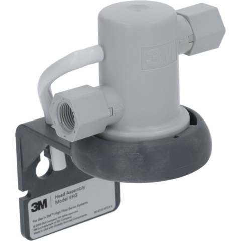 3M VH3 szűrőfej beépített szeleppel és konzollal, amely lehetővé teszi a vízszűrő betétek gyors és higiénikus cseréjét a víz elzárása nélkül. Ideális vendéglátóipari és professzionális vízszűrő rendszerekhez.