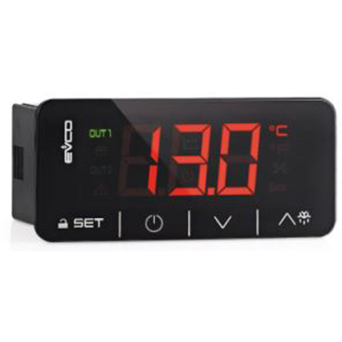 CONTROLLER EVCO EV3411M3 tápegység 12 Vca / DC 1,5VA termosztát beállítási tartománya 0 + 600 ° C BE-KI vezérlés csak egy működési ponttal 1 váltórelé kimenet 16A riasztó hangjelző hozzáférés a konfigurációs paraméterekhez a jelszó - TTL soros port szoba