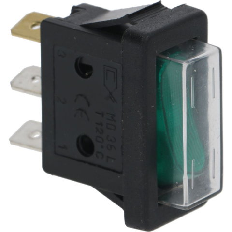 16(4)A 250V - egypólusú váltókapcsoló | jelzőfénnyel és nyomógomb sapkával | szerelőlyuk 11x30 mm | max hőmérséklet 120°C