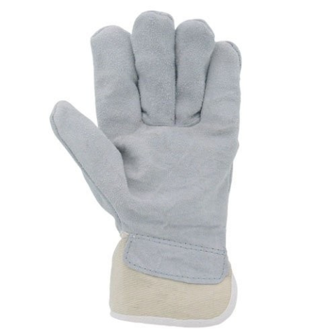 Anyaga: szürke marhahasíték Fehér vászon kézhát és mandzsetta. Artéria-, köröm- és ökölcsontvédő. Pamut tenyérbélés. 12 pár/csomag. 10-es méret Férfi XL .