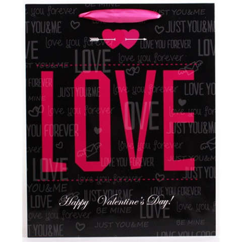 Dísztasak fényes 18x23 cm fekete/piros love M méretű dísztasakanyag: 210 g/m2 súlyú papírformátum: állófelület: fényesfogantyú: szalagfül