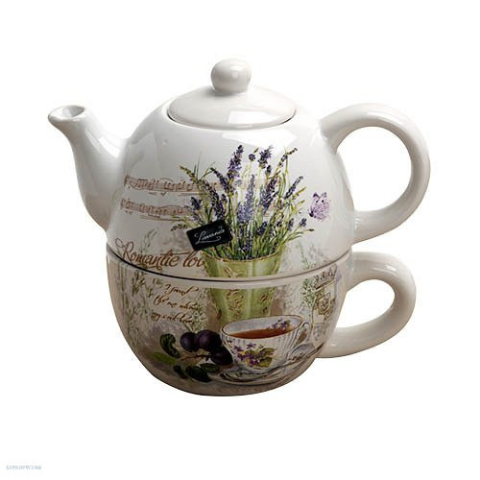 Teakiöntő és csésze, 1-1 db, egymásba tehetőek 240 ml, 280 ml Divatos, levendulás mintával díszített csésze kerámiából, magyar tervezés alapján. Aranyozott mintája miatt mikrohullámú sütőbe nem tehető. .