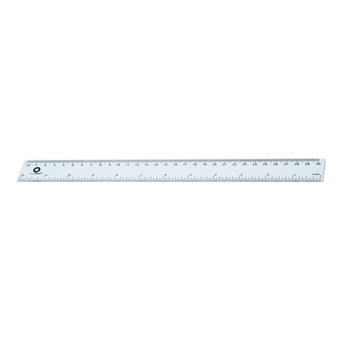 30 cm-es vonalzó iskolai vagy otthoni használatra. Erős anyagból készült, ellenáll a deformációnak, nagy törésállóság jellemzi. Szabványos skálával. Az alulvágott élek megkönnyítik a precíz mérést. Hossz: 30 cm. Szín: átlátszó. Anyaga: műanyag. .