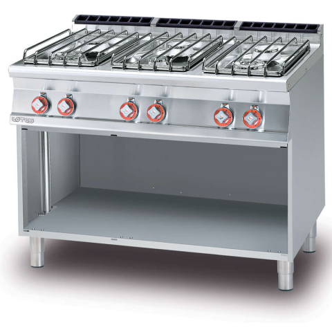 6 Égőfejes Gáztűzhely Alul Nyitott Tárolóval: Tökéletes Konyhai Segítség 🍳 Ez a 6 égőfejes gáztűzhely ideális választás éttermek, vendéglátó egységek és nagyobb családok számára. A nagy teljesítményű égőfejek gyors és hatékony főzést biztosítanak, m...
