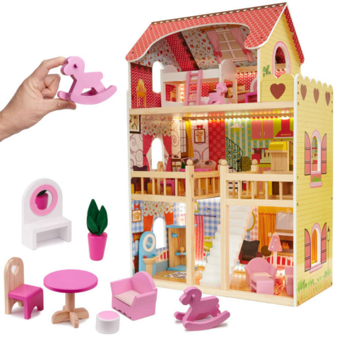 90 cm-es LED-es Babaház Bútorokkal: Varázslatos Otthon a Babáknak ✨ Ez a gyönyörű, háromszintes babaház LED világítással igazi álomotthont teremt a babáknak és figuráknak. Több mint 5 szoba és egy erkély várja a kicsi lakókat! A részletgazdag kidol...