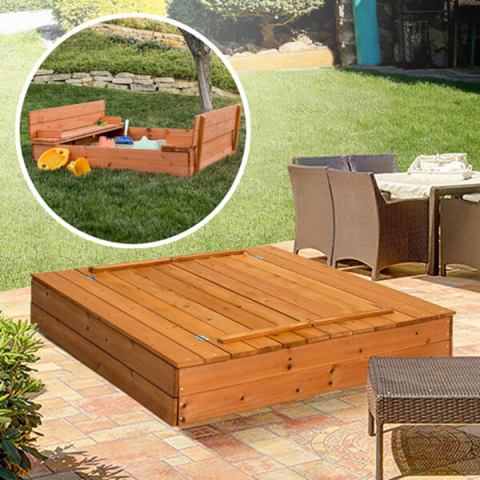 Fa Homokozó Padokkal - Tökéletes Kertbe és Udvarra ☀️ Ez a gyönyörű fa homokozó remek szórakozást biztosít a gyerekeknek, miközben biztonságos és kényelmes játékteret kínál. A felnyitható tető védi a homokot a szennyeződésektől és az állatoktól, éjsz...
