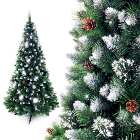 1 kép Nonbrand Havas 3D Prémium Műfenyő, Karácsonyfa tobozzal talpal 250 cm