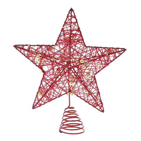 Nonbrand Karácsonyfa teteje Glitter Star, 20 x 21 cm, piros