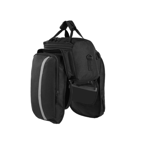 NAGY HÁTSÓ KERÉKPÁRTÁSKA CSOMAGTARTÓRA 3 REKESSZEL Multifunkcionális nagy kerékpártáska, amely a csomagtartóra szerelhető. Rendkívül hasznos hosszabb kerékpártúrák során, lehet benne pakolni ruhákat, apróságokat, élelmiszert. Nagyon tágas, ráadásul esővédő huzattal is rendelkezik. A táska rendelkezik 1 főrekesszel és 2 oldalsó rekesszel, amelyek nagyobb zsebekké bontakoznak ki. Minden cipzárral záródik. Hátul található egy kisebb zseb például kulacs szá