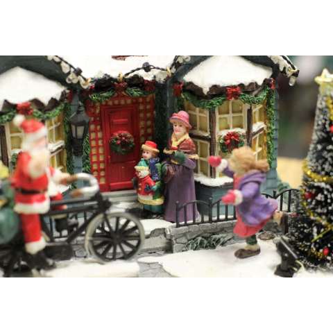Karácsonyi falusi tájkép mozgó Mikulással és fényekkel - 25 cm Varázsolja el otthonát ezzel a bájos, 25 cm-es karácsonyi falusi tájképpel! 🎄🎁 Mitől különleges ez a dekoráció? Mozgó Mikulás: A Mikulás biciklivel érkezik, és ez a mozgás extra varáz...