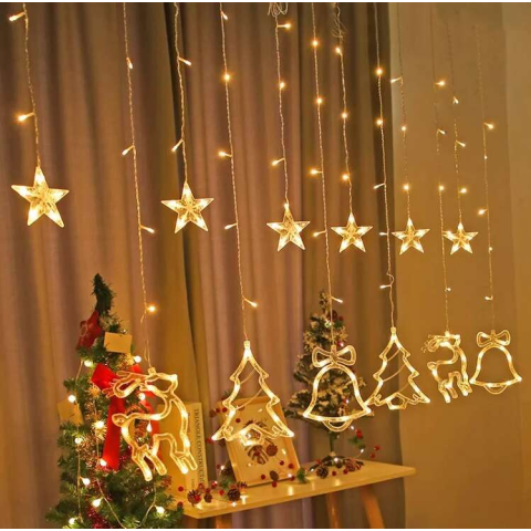 1 kép Nonbrand LED rénszarvas függönylámpák 2.5m 138LED meleg fehér