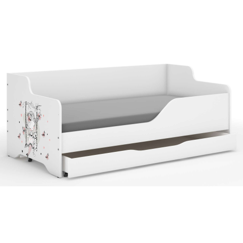 1 kép Nonbrand LILU gyerekágy laminált fronttal 160x80cm matraccal és ágyneműtartóval - hintázó lány