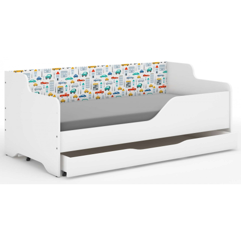 1 kép Nonbrand LILU gyerekágy laminált oldallal 160x80cm matraccal és ágyneműtartóval - autós