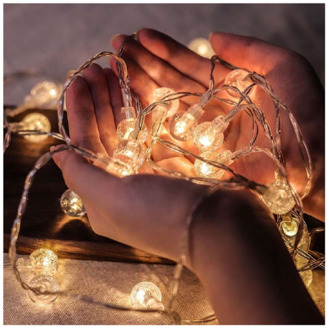 Nonbrand Meleg fehér, elemes LED Fényfüzér 30db izzóval - Gömb karácsonyfa izzósor 1 kép