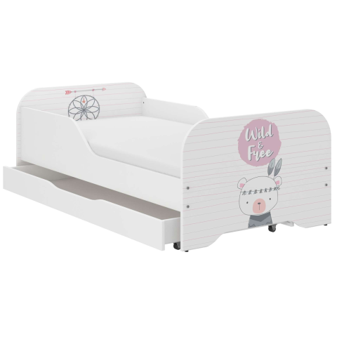 1 kép Nonbrand MIKI gyerekágy 140x70cm matraccal és ágyneműtartóval - boho maci