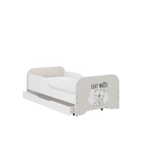 1 kép Nonbrand MIKI gyerekágy 140x70cm matraccal és ágyneműtartóval - fehér maci