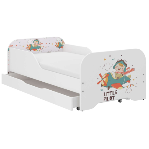1 kép Nonbrand MIKI gyerekágy 140x70cm matraccal és ágyneműtartóval - kis pilóta