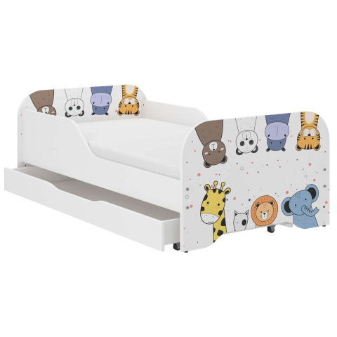 1 kép Nonbrand MIKI gyerekágy 140x70cm matraccal és ágyneműtartóval - mini zoo