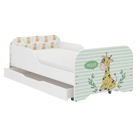 1 kép Nonbrand MIKI gyerekágy 140x70cm matraccal és ágyneműtartóval - zsiráf