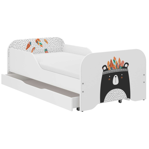 1 kép Nonbrand MIKI gyerekágy 160x80cm ajándék matraccal, ágyneműtartó nélkül - indián medve