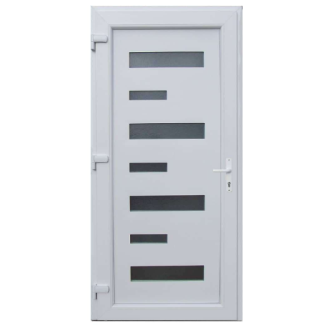 Külső oldala savmaratott és bronz üvegezésű. Minőségi 5 légkamrás műanyag bejárati ajtó Milano ajtópanellal, savmaratott és bronz reflexiós üvegezéssel. Ajtóinkban kilincs működtetésű 5 pontos rúdzár, az ajtószárnyakban 1,5 mm acél merevítés találhat...