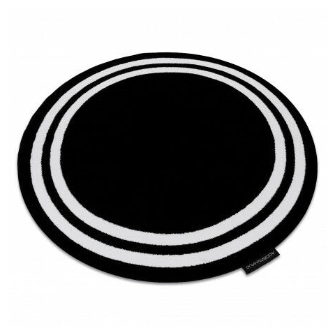 Fehér-fekete csíkos kerek szőnyeg - 200 cm átmérőjű Ez a stílusos, 200 cm átmérőjű kerek szőnyeg fekete alapon fehér csíkokkal feldobja otthonod bármelyik helyiségét. A puha, kellemes tapintású polipropilén anyagból készült, így kényelmes és tartós i...