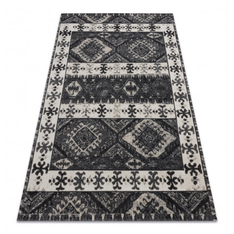 Modern etnikai szőnyeg kültéri használatra - MUNDO E0651 - Bézs/Fekete 140x190 cm Ez a stílusos, modern szőnyeg tökéletes választás otthonába, vagy akár teraszára is. Az etnikai mintázat feldobja a teret, a bézs és fekete színek pedig könnyen kombiná...