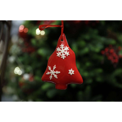 Nonbrand Piros felfüggeszthető hópelyhes karácsonyfa 11cm