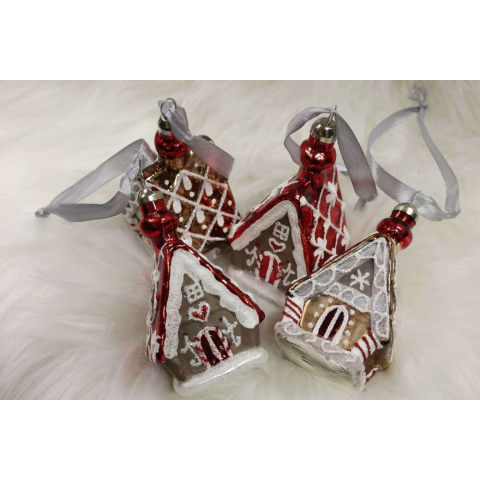 Nonbrand Piros karácsonyi mézeskalács házak 4db 9cm karácsonyfadísz 1 kép