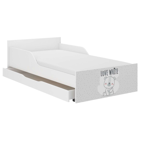 1 kép Nonbrand PUFI gyerekágy 160x80 matraccal és ágyneműtartóval - fehér maci