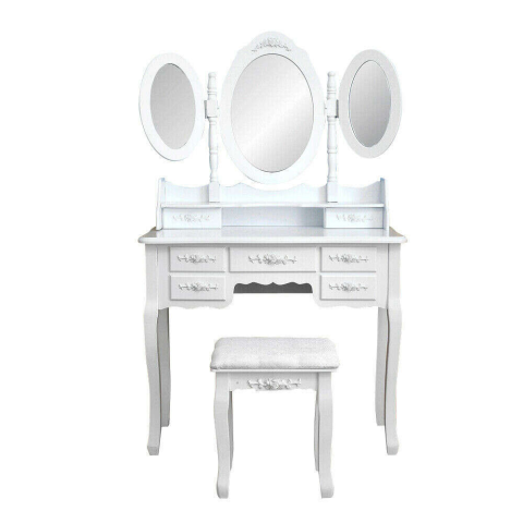 Elegáns fehér sminkasztalkészlet tükörrel és székkel Ez a gyönyörű shabby chic stílusú sminkasztalkészlet tökéletes választás azoknak, akik szeretik a romantikus, elegáns bútorokat. A fehér színű fa asztalka háromrészes tükörrel, számos fiókkal és eg...