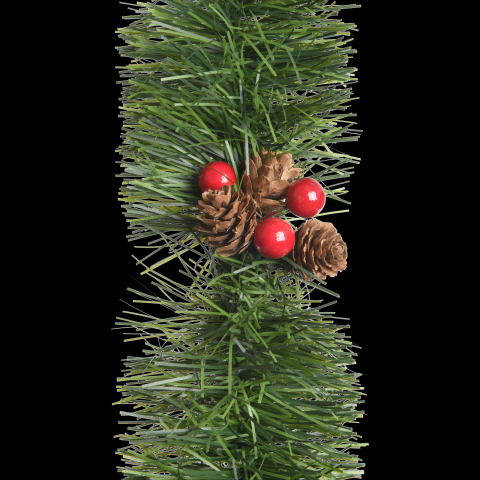 Girland zöld toboz és piros bogyós díszítéssel