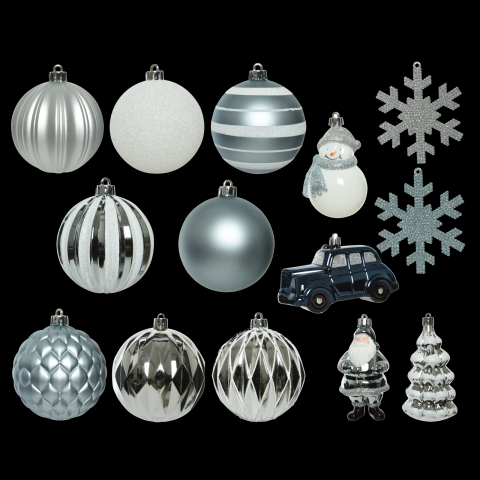 1 kép Norand KARÁCSONYFA DÍSZ SZETT 25 DB-OS KÉK/ FEHÉR